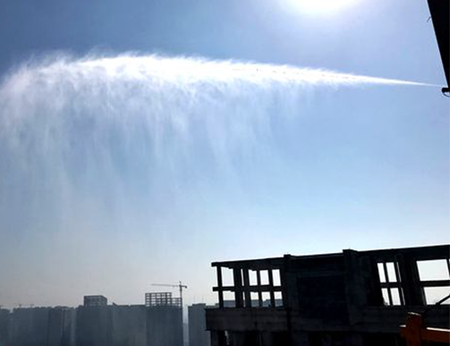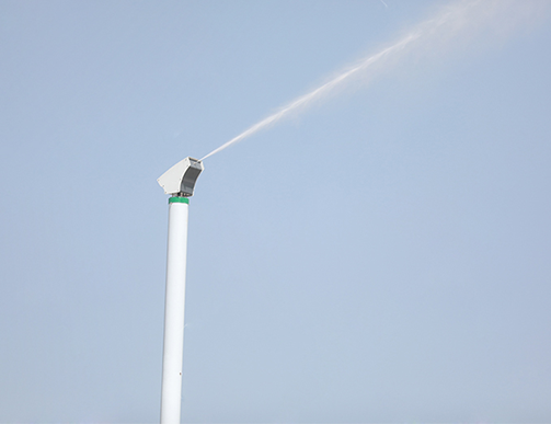高壓旋轉(zhuǎn)噴霧樁抑塵設(shè)備是我公司新開發(fā)、研制和生產(chǎn)的具有高科技含量的一套針對工況企業(yè)室外大面積堆料場,馬路,礦山道路的抑塵系統(tǒng),它利用高壓水泵將經(jīng)過多級過濾器凈化處理過的水源(水源經(jīng)過特殊處理,去除水質(zhì)中的泥沙、鐵銹、油脂、鈣鎂離子)加壓至8-9Mpa,再通過耐高壓、耐酸堿性的高壓管路輸送到“360度旋轉(zhuǎn)”噴頭經(jīng)過噴灑。按照實際使用的要求,可在本地控制箱/遠程操作平臺/手機APP平臺。設(shè)置噴霧的距離,噴霧的旋轉(zhuǎn)角度,噴霧的工作間隙。噴灑在需要抑塵的場地,水霧快速在空氣中擴散后,揚起的灰塵被噴霧形成的霧滴所覆蓋和包裹,顆粒自重增大而墜落,無法再揚起,達到了抑塵的效果。